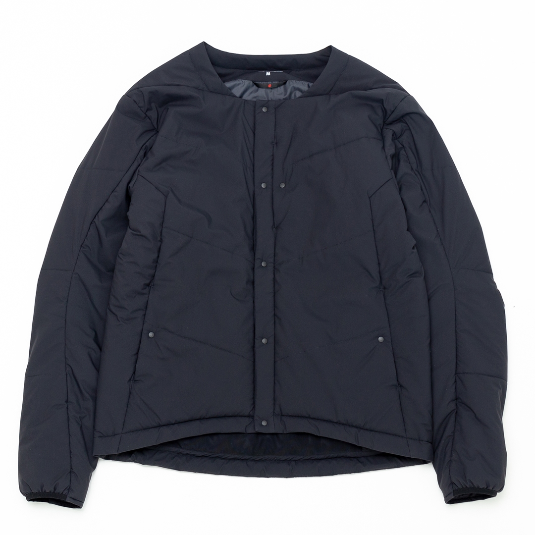 デザインはシンプルなクルーネックのデザイン。シャツはもちろん、フードやハイネックのアイテムとも合わせやすく、レイヤードスタイルに最適なジャケット。